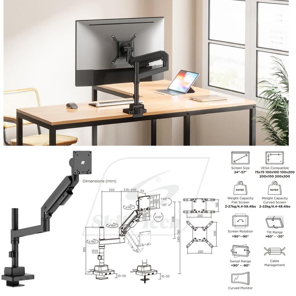 يمنحك مرونة كاملة للتحكم في وضعية الشاشة وزواياها بدقة، ليجمع بين الراحة والإنتاجية.